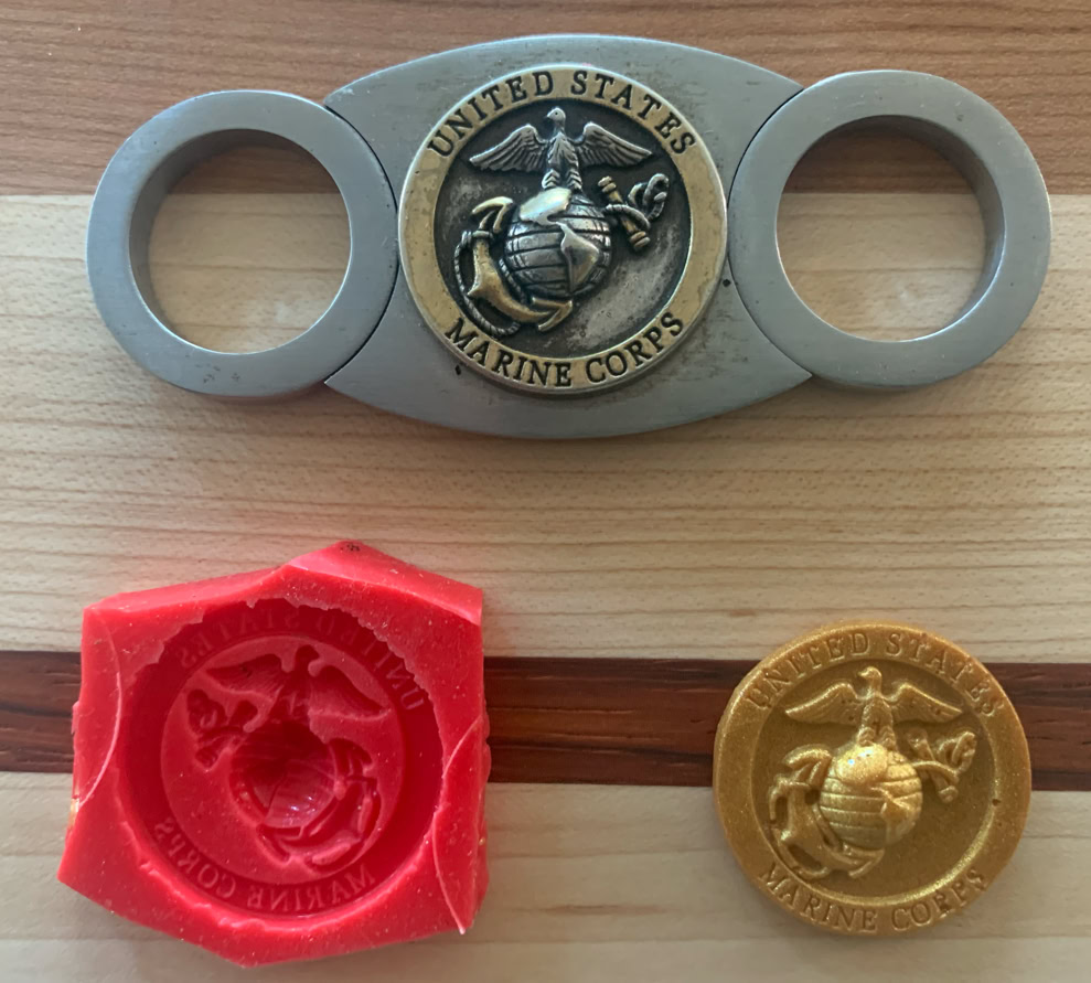 Step 1: I made a rubber mold (red) from a cigar cutter